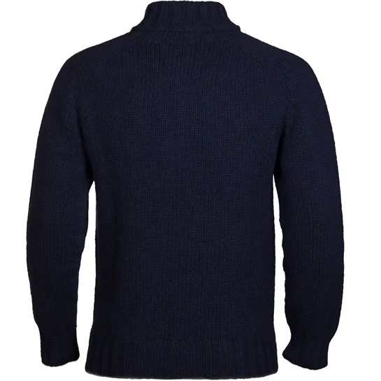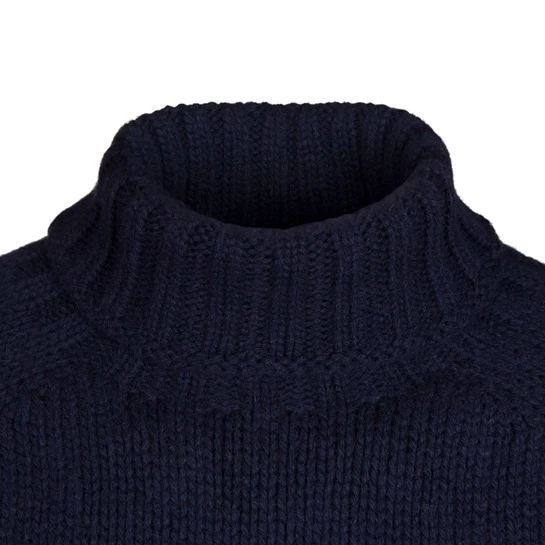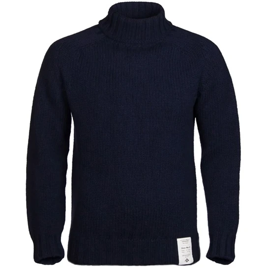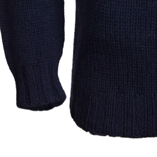 This classic Roll Neck Sweater available in Cream or Navy is knitted in Scotland exclusively for Aero in heavy duty Shetland Wool, especially selected to best replicate the wool used in the sweaters worn by hardy sailors in the harshest of conditions during the conflict. The neck is designed for both comfort and warmth, the roll is knitted not to be restrictive and has extra length to allow to be worn fully raised to protect the face against the elements To further replicate the original we’ve sewn a facsimile of an original War Department label onto the ribbing on the left hand side. The use of external labels was experimented with on various items of issue knitwear for ease of size identification in Quartermaster’s Stores. Like the originals, our label is sewn on with a large stitch making it easy to remove.