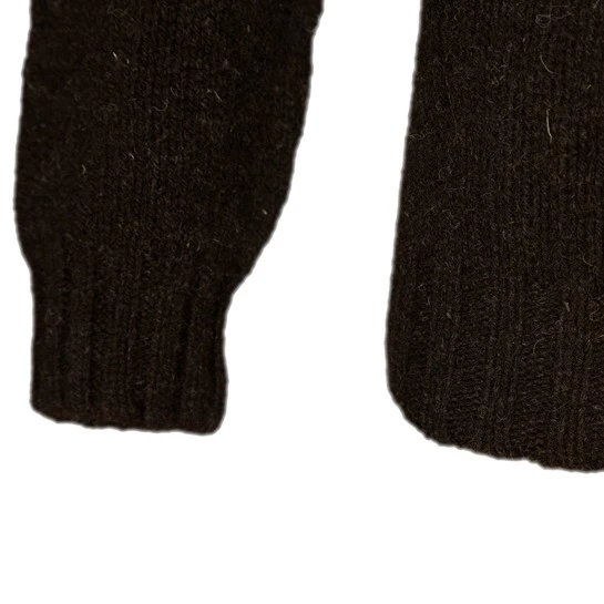 THE WOOL: This unique sweater has been knitted here in the heart of Scotland using undyed, natural raw organic wool, ethically sourced, sheared and spun in the UK from a selection of unique native breeds. The fibre has been processed using traditional time-honoured techniques with an emphasis on sustainability and a low environmental impact. The absence of any dyeing process allows the natural colours, nuances and shades of each “Best of British” breeds to be reflected in the finished garment.