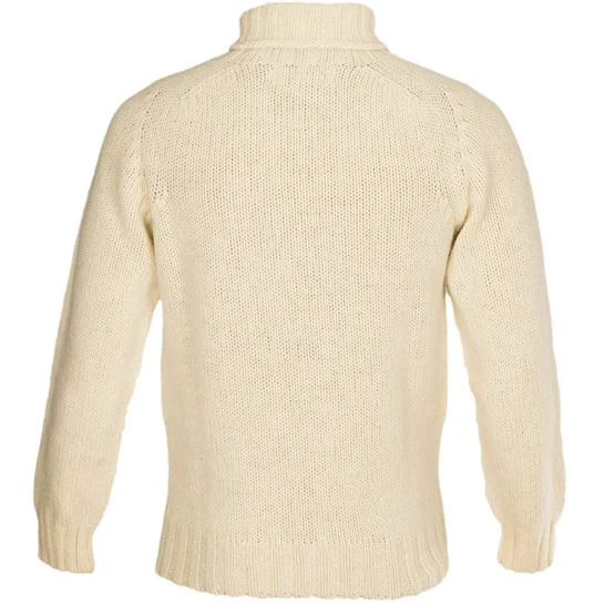 THE WOOL: This unique sweater has been knitted here in the heart of Scotland using undyed, natural raw organic wool, ethically sourced, sheared and spun in the UK from a selection of unique native breeds. The fibre has been processed using traditional time-honoured techniques with an emphasis on sustainability and a low environmental impact. The absence of any dyeing process allows the natural colours, nuances and shades of each “Best of British” breeds to be reflected in the finished garment
