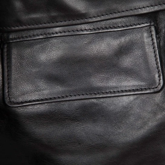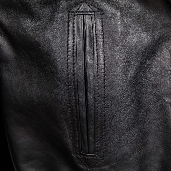 The Blizzard leather jacket features four deep pockets lined in Moleskin for warmth, has a heavyweight Lochcarron lining as standard, a full-length detachable belt to keep any storm at bay, and an extra button to draw the shawl collar in tight at the neck. All in all, the Blizzard jacket is the ultimate winter leather jacket.