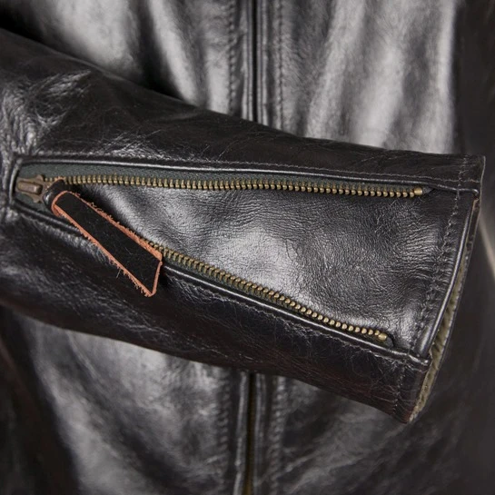 Inspired by those early designs, Aero’s Board Racer is cut with the same extremely close fit and has several other features optimising the jacket for riding. The curves cut at the collar and elbow are the optimal angle to combine comfort and practicality for riding and the front zipper stops short at the bottom so as not to pucker the jacket while seated. There are a few alternative configurations to our Board Racer available which have alternate back, collar and pocket set-ups. The most popular variation is our J-100 Board Racer inspired by Buco’s historic J-100 design.