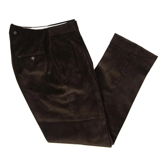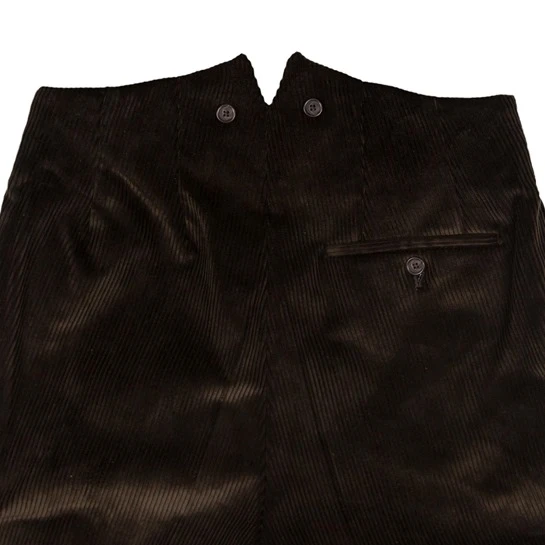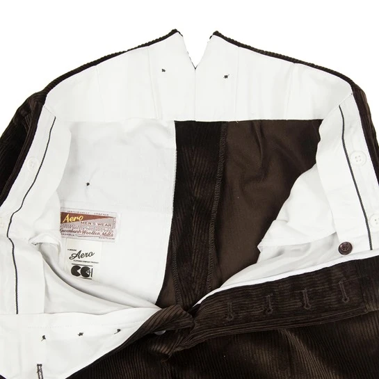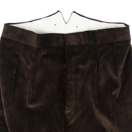 These superb traditional “Utility” brown corduroy trousers are loose cut and are made in The UK, they are stitch for stitch replicas of an original pair of 1940s CC41 labelled corduroy trousers from our archives.