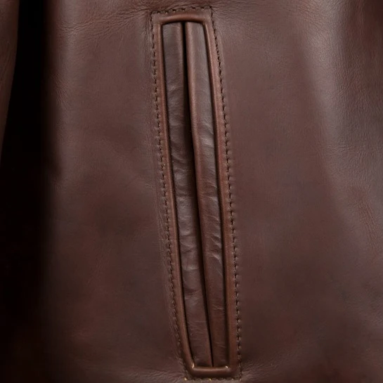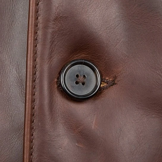 As far back as the end of the 19th century a longer button-up jacket with secure pockets was an essential part of foul weather protection for those involved in logging, ranching, cattle driving where days on end were spent on horseback in some of the worst. The Cheyenne leather jacket takes it’s inspiration from the jackets more typically used in the 1930s.