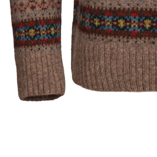 When Scottish explorer, William Speirs Bruce set out from Dundee on his 1902-1904 Antarctic expedition, the crews kit included more than 100 Fair Isle garments. By the 1930s commercial knitting patterns for Fair Isles were widely available and hand knitting became a very popular pastime, indeed this, our latest Fair Isle design, dates from that decade and is a perfect replica of a much loved and often darned original 1930s pullover in our archives.