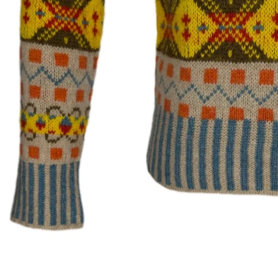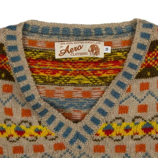 Our Scottish knitters have replicated this iconic sweater, exclusively for Aero. This is strictly limited edition for this season only. For many years Aero has offered a range of hand knitted Fair Isles. Sadly, one by one of our fabulous knitters have retired and the skill base needed to produce these unique sweaters has dwindled.