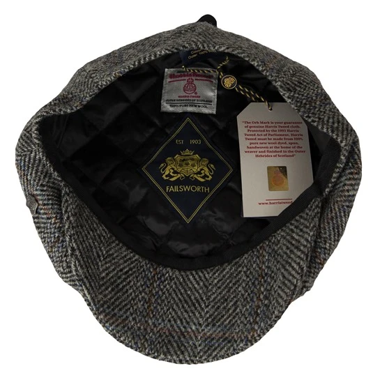Harris Tweed Eight Panel Bakers Boy Cap: Salt And Pepper