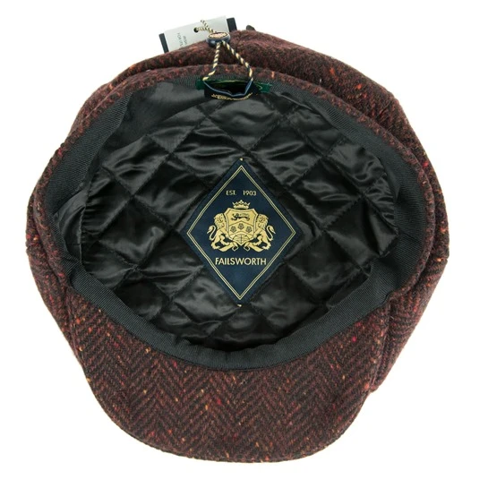 These eight panel tweed caps, while similar in style to the ubiquitous flat cap, are cut with a much fuller and more rounded shape and have a stiff curved peak with a stitch under the overhang to pull the body of the cap tight to the brim. Our cap is fitted with a quilted lining to keep the wearer’s head warm, dry and protected from the elements and is crafted in a Donegal Tweed, new to our collection.