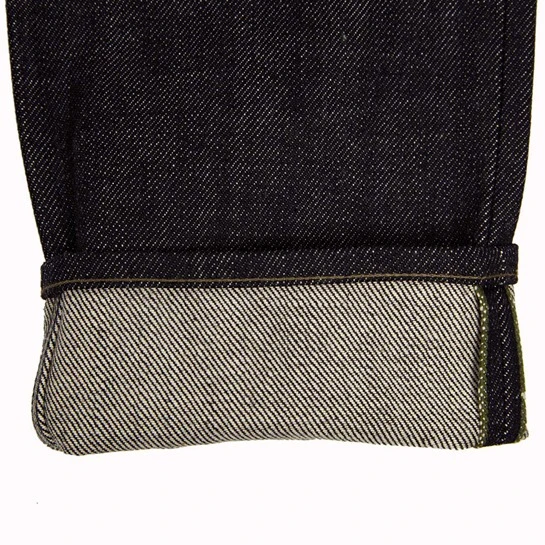 This seasonal 101 Z, the relaxed fit premium Lee Jeans is delivered in a 21oz Heavyweight Rigid Japanese Selvedge Denim from Kuroki, Japan. It is woven on authentic narrow looms, is rope dyed, went through 8 dips and comes with a beautiful dark green full selvege finish.