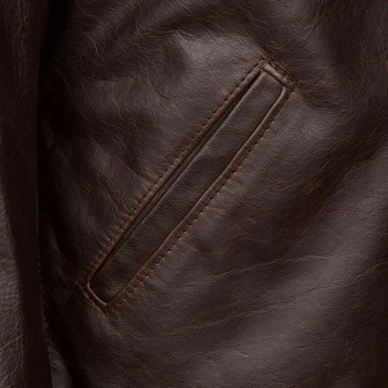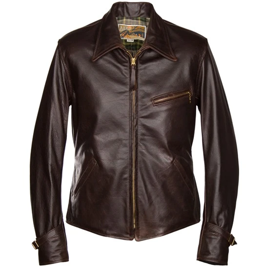 This, the most recent addition to our Premier range, is basically a replica of the jacket worn by Toby Maguire in his role as Red Pollard in the film Sea Biscuit. Ever since the film was released legend had it that Aero had made the film jacket – we didn’t, we denied it but still the story rolls on. We believe it’s an original early 1930s jacket, there is a styling clue that suggests it might be a Levi Jacket but we don’t want to kick start the debate.