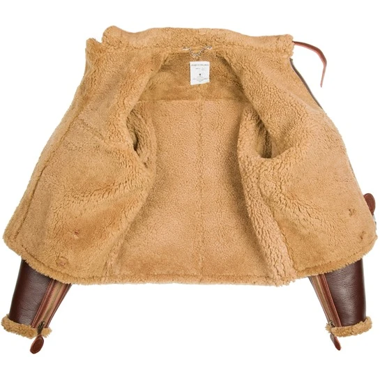 The basic design of the RAF Flight jacket included a heavy sheepskin with honey coloured fleece, a front zip, high collar, zip sleeves, no pockets, and a front functional half belt at the waist. As the war marched on and resources became scarcer, the amount of panelling in the flight jackets increased to decrease wastage of valuable materials. This is reflected throughout our range of three RAF authentic recreation models (Pre-War, Battle of Britain and Late WW2) which share the same cut and basic design but have increasingly complex panel configurations. Introduced in small numbers just before The Battle Of Britain, this design was the first split panel RAF flight jacket which had horizontal seaming.