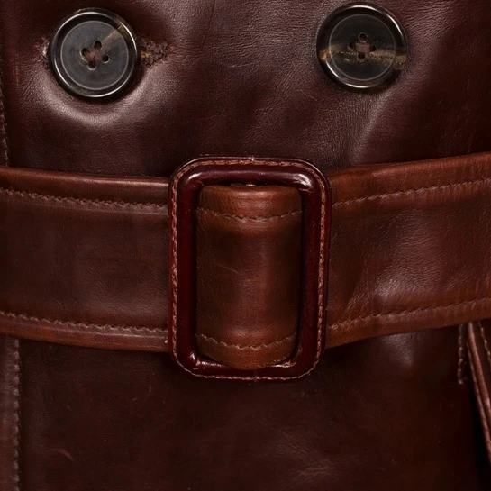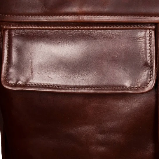 The story behind these classic jackets goes back to the early days of flight. A double-breasted 4-pocket Horsehide coat soon became the ultimate in protection for the intrepid pioneers of flight. The flying leather necks, the cargo and mail pilots of the early days of Air Freight, faced long hauls in bitter weather conditions with only their flying coats to keep the elements at bay. Their first choice was a Double Breasted Horsehide leather coat, chosen for its warmth, strength and durability, all the hallmarks of this Aero garment.