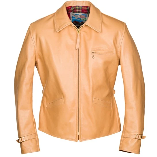 The “Sunburst” back itself is probably a throwback from the 1920s but, as The Depression bit harder, clothing manufacture and design reflected the need to conserve raw materials and leather jackets began to use more small panels and a slimmer cut. What started out as economy gave us some of the most interesting and stylish jackets of the 20th Century. We’ve added this dramatic back to a classic 1930’s sloping front, but used a less angled handwarmer pocket design than those fitted to most Aero jackets, along with a straight zippered breast pocket. We’ve not used this cuff design for a very long time but, as it’s typical of the cuff used on many 1930’s jackets, we felt it was due to be revived.