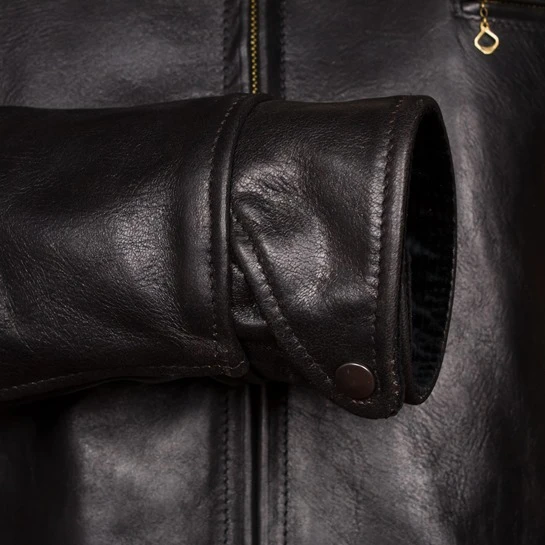 We can’t take the credit for the design of the Thunderbay, as it’s a virtual stitch for stitch replica of an original 1930s jacket in our archives. In fact, the Thunderbay is a jacket that was worn by the founder of Aero Leathers for many years until it became too delicate for everyday wear, and thanks to some sterling work by David Macks, we have been able to identify the maker of the original jacket as Franco Canadian.