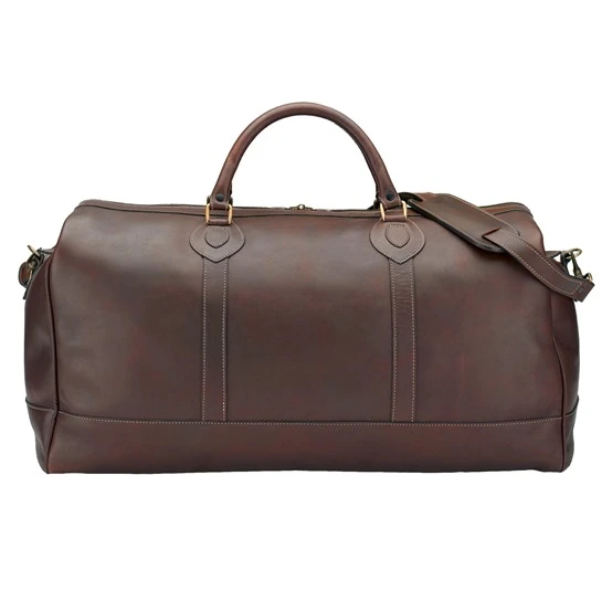 Back in the late 1980’s one of the first pieces made outside the Aero factory to be added to our range was this stunning British made Weekender travel bag. This bag is the first we’ve found which offers a similar level of style, practicality, quality and strength. Each bag is hand made in the traditional 19th Century way using the finest full grain English Bridle leather, top quality canvas, Riri Zipper, solid brass metal fittings. The stress points on handles and corners are double saddle stitched for extra strength in contrast stitching and even the base is made from full leather with brass studs to protect the leather. For ease of use the bag comes with a detachable, adjustable shoulder strap. These bags age beautifully and acquire the mellow patina and distinctive personality of a classic piece of furniture.