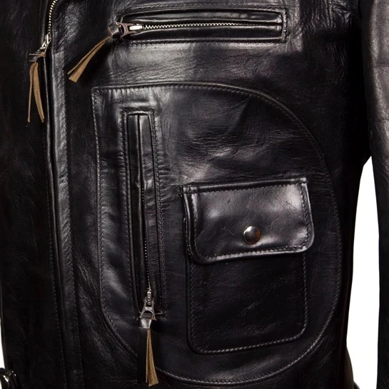 As the years went on, the leather motorcycle jacket continued to evolve and take on new styles and designs, but classic features typically included a cross zip, studded shoulder epaulettes and lapels, a functional waist belt and an eclectic pocket set up.