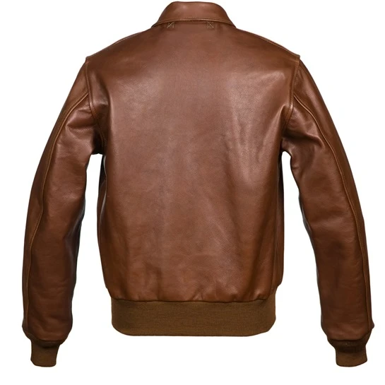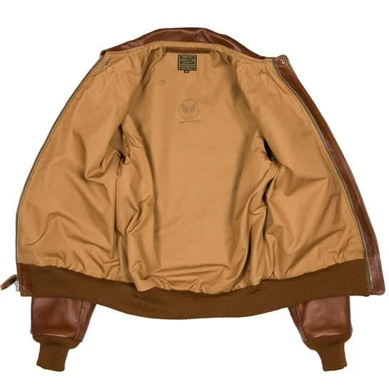 This is our version of the Bronco Type A-2, like the original, it is available in Horsehide, Steerhide and Goatskin. All detailing is 100% correct, of course, the patterns are taken from original USAAF issue jackets so the fit is identical to the WW2 jacket. This A-2 has square shoulders, a slimmer torso and less tapered lower sleeve than most other contracts. We’ve replicated every detail being from the specific top stitch style on the seams and epaulette box to bevelled pockets, to the perfect recreation of the military label etc. The lining is the correct shade of pale mustard