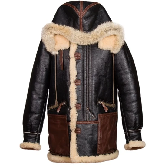 The Type B-7 Arctic Parka was originally designed for flight crews and ground personnel based in extreme cold and remote locations during World War II. The B-7 Flight Parka is a mid-thigh length jacket that features trimmed hood with drawstrings for protection against the bitter winds and blowing snowstorms. There are two deep open-top front map/cargo pockets which arte perfect for keeping gloves handy , and two additional front zippered pockets with leather reinforcements at key stress points. There are toggle buttons alongside the covered zipper, storm cuffs, leather rank tabs at the shoulder . This jacket is available in Seal Brown, “Redskin” or Natural Sheepskin.